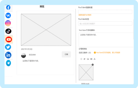 支持一键发布作品到Tlktok、Instagram、YouTube等。